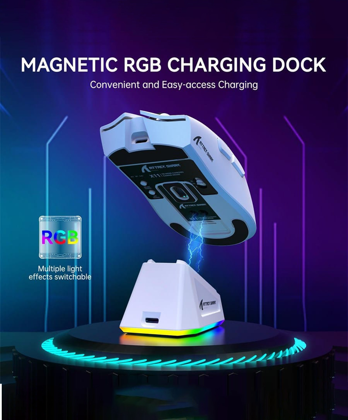 ATTACK SHARK X11 Gaming Mouse with Magnetic Charging Dock, PixArt PAW3311 Gaming Sensor, BT/2.4G Wireless/Wired