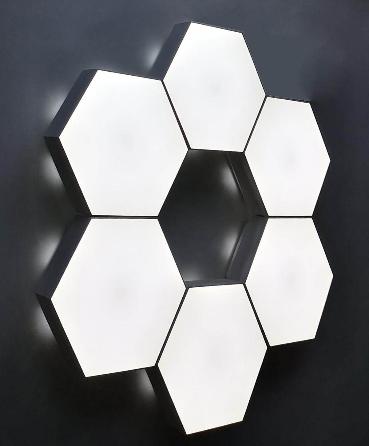 Transform your space and personalize your lighting experience with Cololight Pro Hexagon Light 6pcs Kit. This 6 piece set features 16 million colors, controllable group effects, and effortless installation to bring your home, office, or studio to life. Create a symphony of RGB light and color with Cololight Pro!