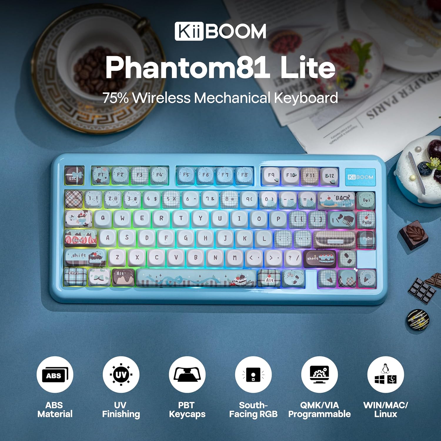 KiiBoom Phantom81 Lite 75% Gasket Mechanical Keyboard, QMK&VIA Programmable, 3 Modes Wireless Gaming Keyboard, RGB Backlights, ABS Case + UV Tech, Hot-Swappable for Windows/Mac/Linux (Blue)